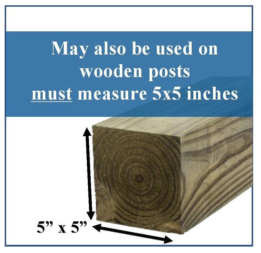 - Post must measure a True 5” x 5” (127mmx127mm) - Will NOT fit on a nominal 4-1/2” x 4-1/2” wood post - see images.