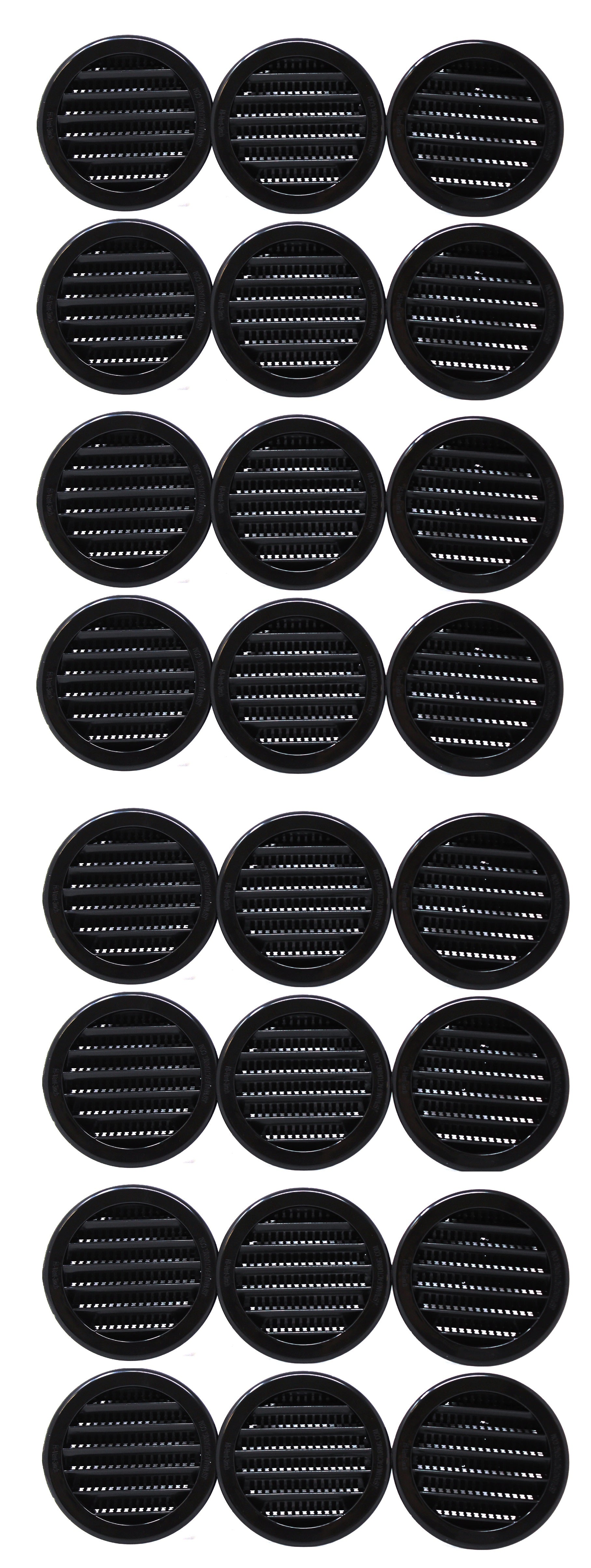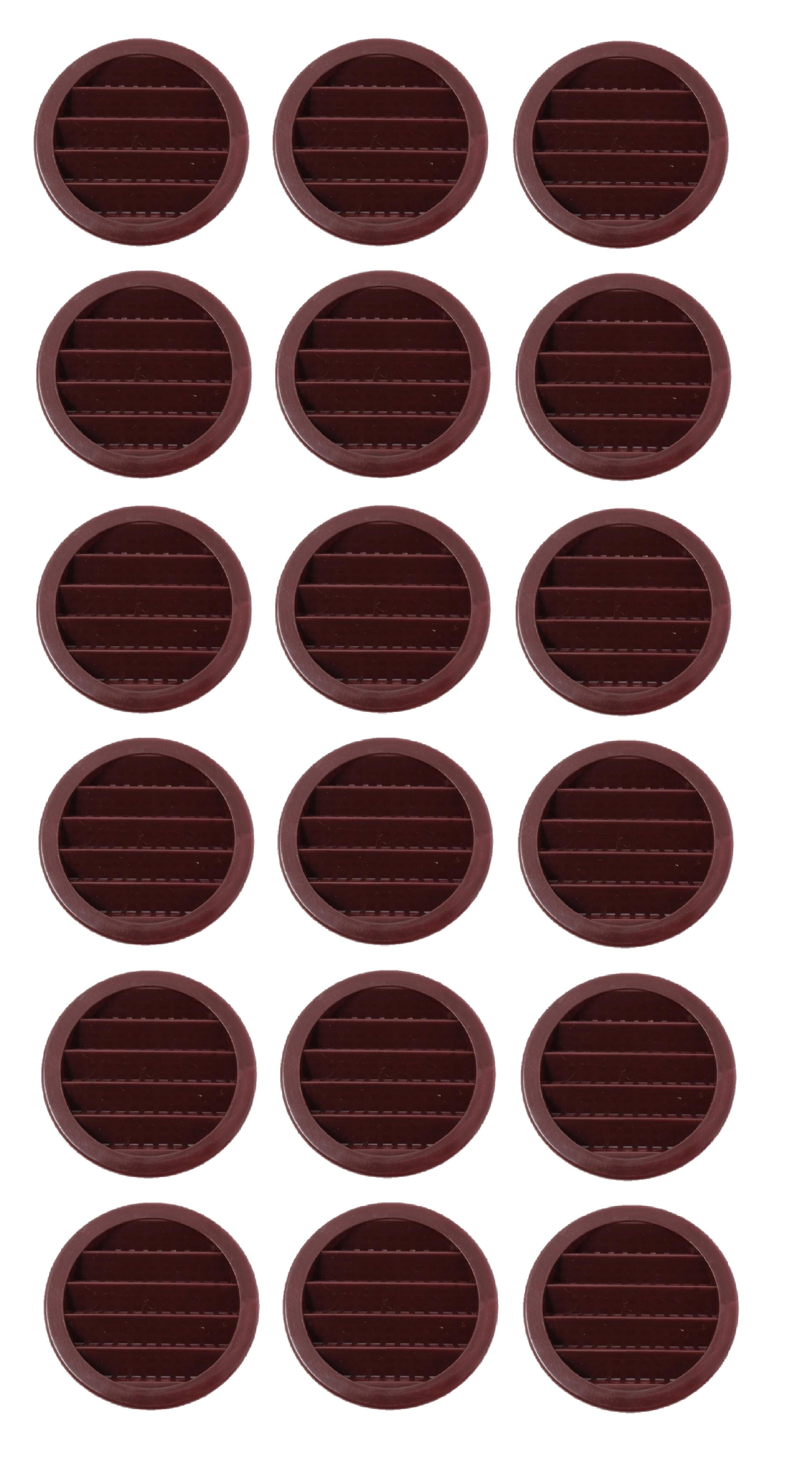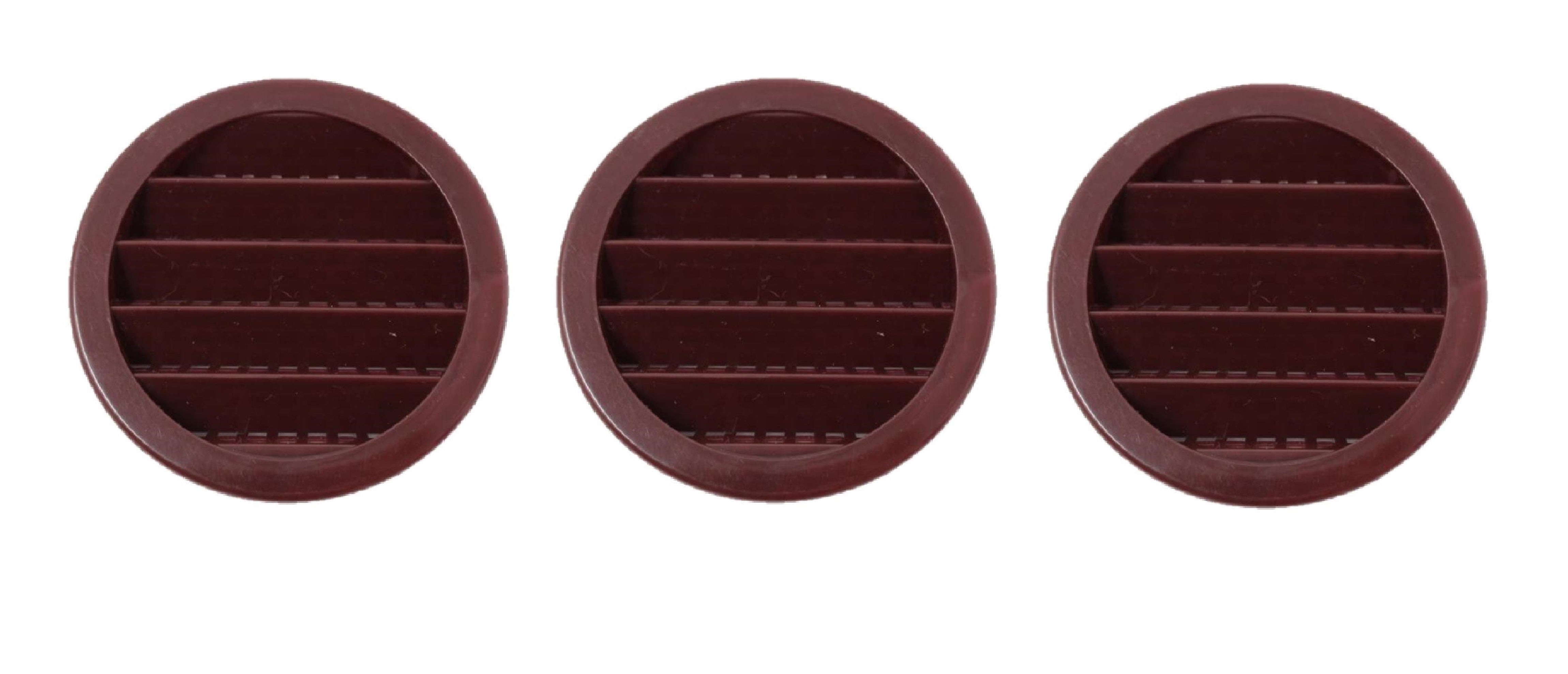 This 2.5" Round Plastic Louver is heavy duty, injection molded plastic for strength. Fit into 2-1/2 inch round holes using drill type hole saw and held in place by the knobs on sides of vent. These ventilating soffits are universal and can be used for eaves, reptile cages, display cases, spice racks, and any other place where you need air ventilation.