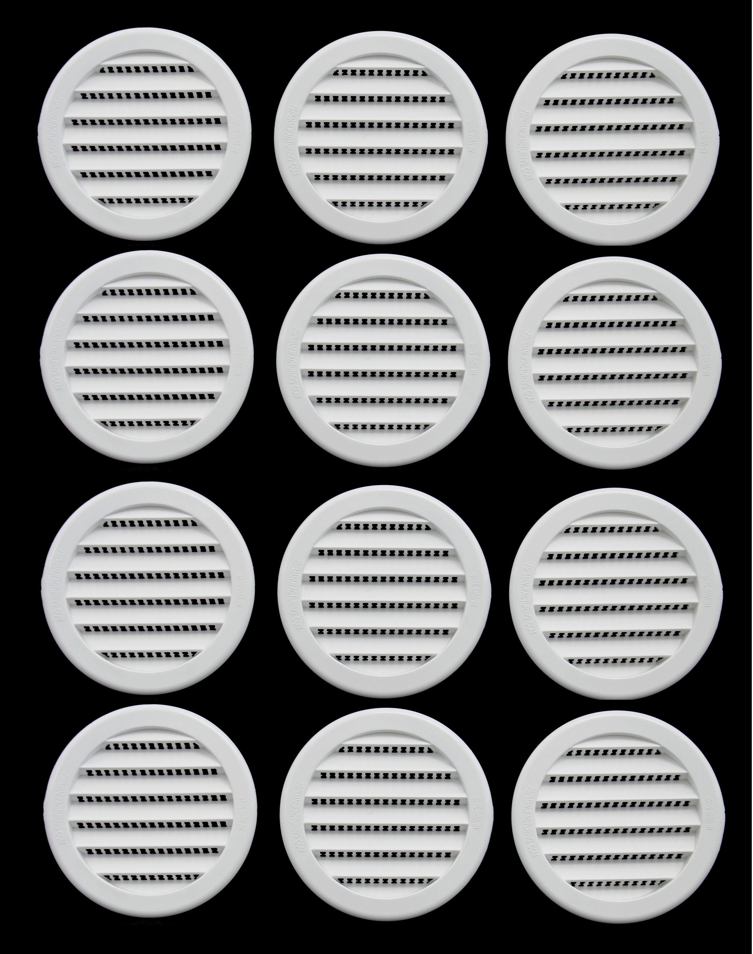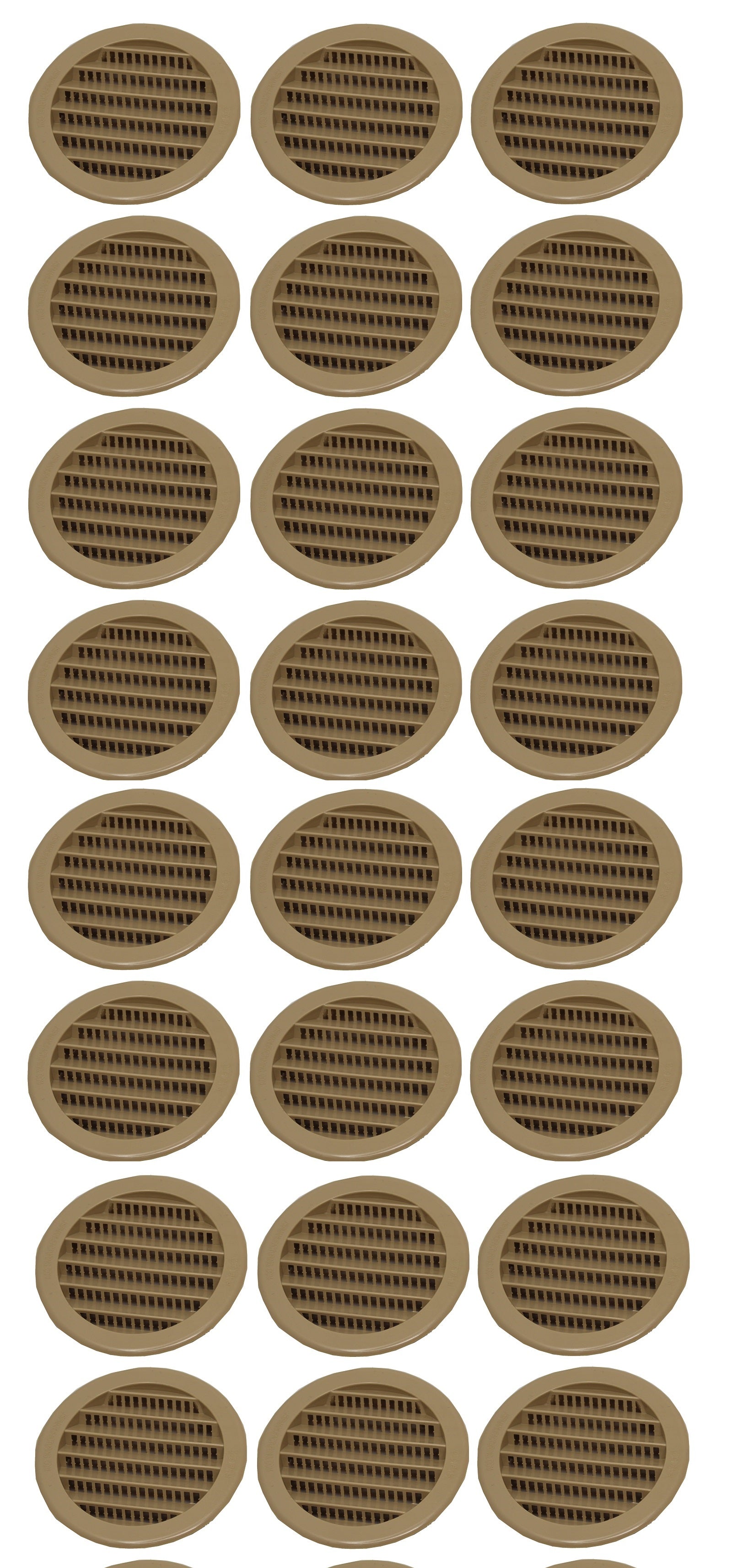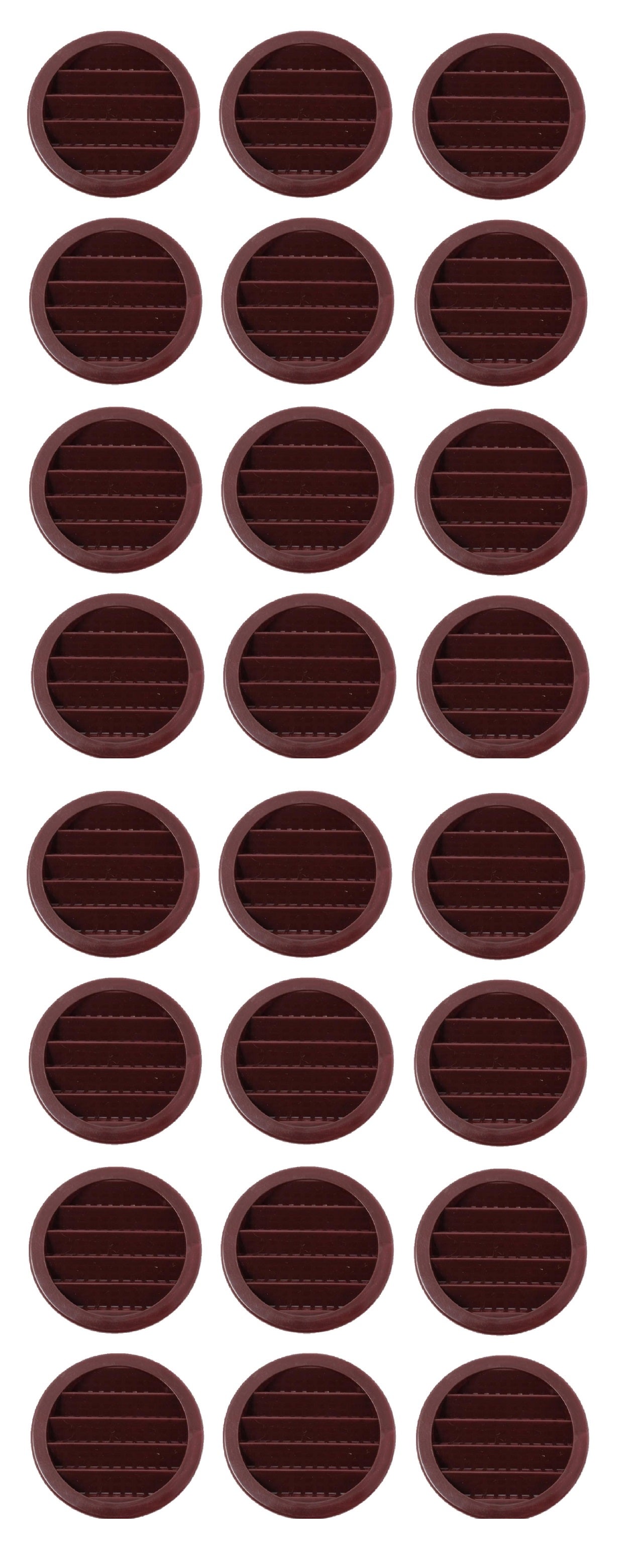 This 2.5" Round Plastic Louver is heavy duty, injection molded plastic for strength. Fit into 2-1/2 inch round holes using drill type hole saw and held in place by the knobs on sides of vent. These ventilating soffits are universal and can be used for eaves, reptile cages, display cases, spice racks, and any other place where you need air ventilation.