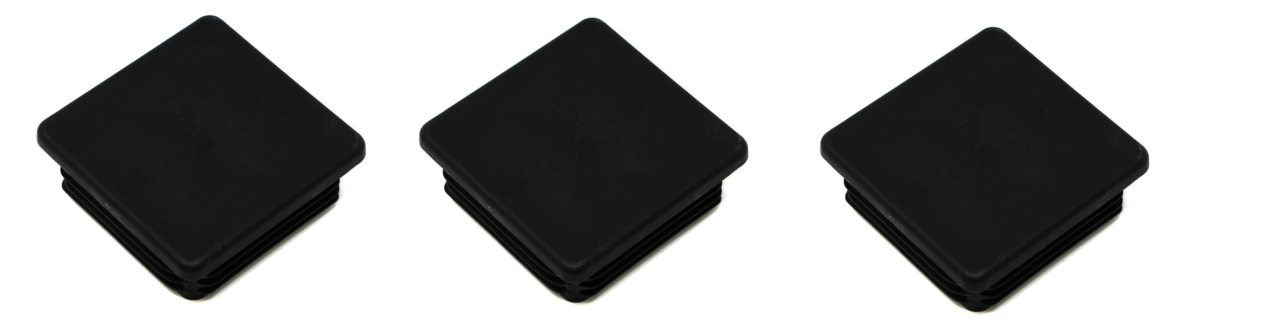 Our JSP Brand Plastic Black 3x3 inch Square Tubing Cap, Finishing Plugs are heavy duty and durable with a flexible ribbed design for a secure and easy fit. They fit any 3” outside dimension square opening. Use these universal plugs to give you that finished look on office or patio furniture, wrought iron, appliances, exercise equipment or any tubing with an 3" outside dimension square opening were a clean finished look is desired.