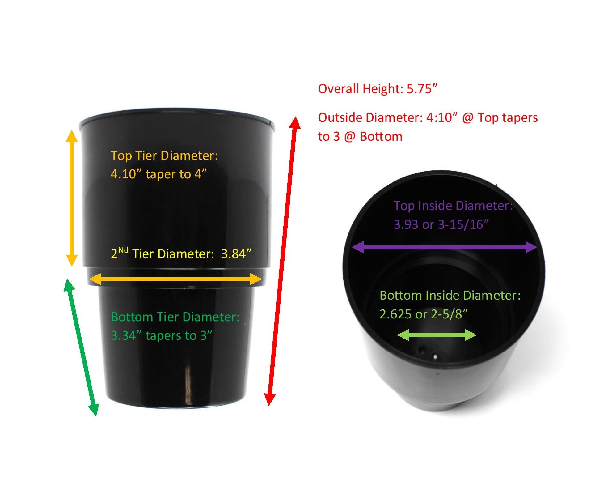 • Top Tier Diameter: 4.10” tapers to 4 inches