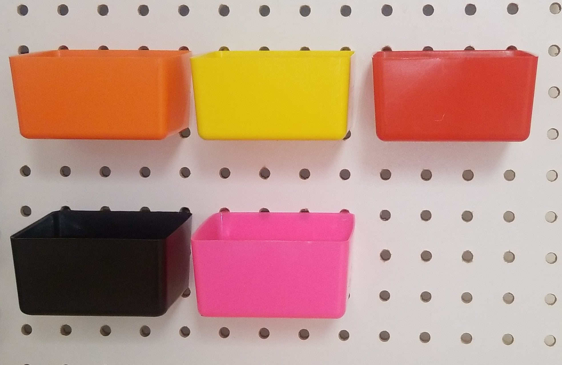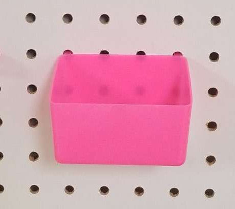 Our JSP Brand Small Plastic Pegboard Storage/Part Bins are heavy duty and fit ¼ inch pegboard (pegboard is not included). These plastic pegboard bins are available in assorted colors and are the perfect addition to your pegboard storage system and are easy to install and move around. These bins will give you the convenience and versatility in organizing your garage, tools, hobby & craft supplies, jewelry or anything you need handy and neatly arranged. Organize your craft room, home, shop or garage with ease.